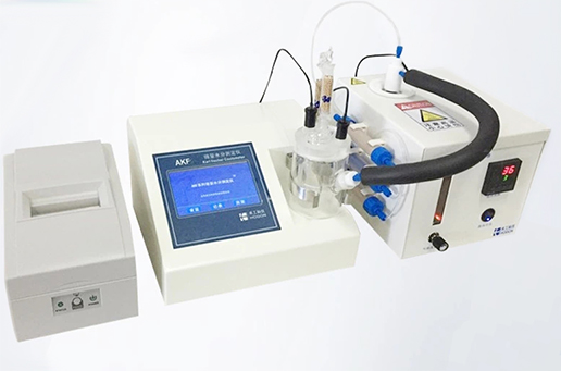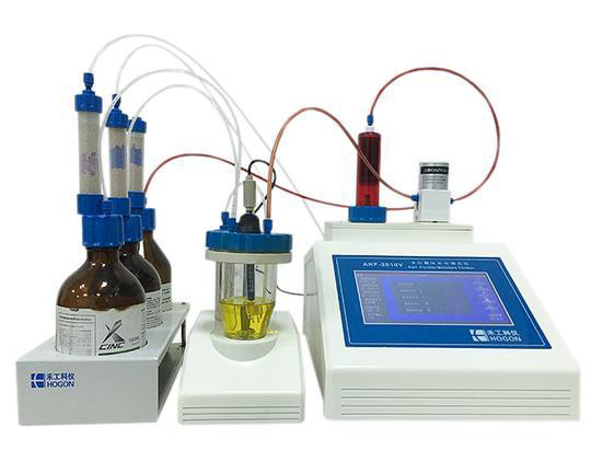 儀器配置 1. AKF-2010V 卡爾費休水分滴定儀主機 2. 全封閉安全滴定池組件; 3. 鉑針電極; 4. 滴定池攪拌臺; 5. 無水甲醇 6. 10L 微量注樣針 7. 5ml 樣品進樣針; 8. 電子天平(0.1mg) 9. 卡爾
